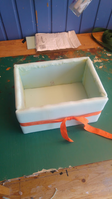 I then sanded the shape until it was nice and smooth and no flat surfaces were left. The polystyrene body was used as a form to shape varafrom (thermoplastic) on top of. This was because the body needed to be hollow, we also needed three identical flamingos so this would ensure that each body would be exactly the shame shape.