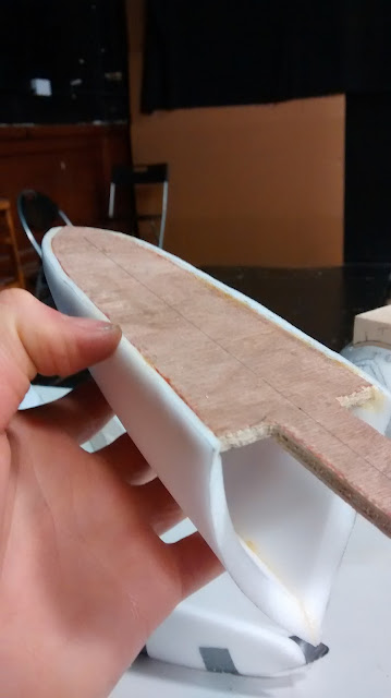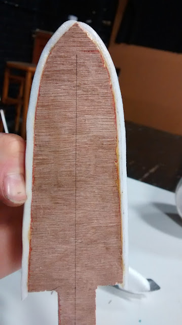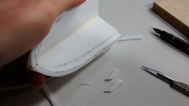 Here is the pattern transferred to foam and glued together. I cut a channel along the bottom so the foam could be stuck to both the side and bottom of the mouth plate.